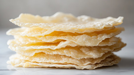 This image features a stacked arrangement of thin, crispy snacks on a soft light background, making it perfect for culinary presentations and snack food themes.