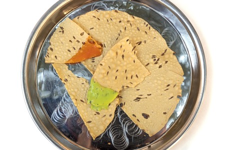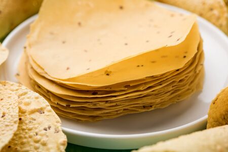 Fried Papad,traditional indian food served on a dish in the local restaurant.Selective Focus