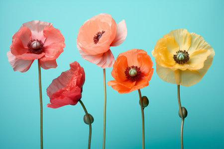 Poppy flowers in the studio. Concept of minimalism and elegance