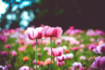 Close-up of pink opium poppy blossoms, also called breadseed poppies