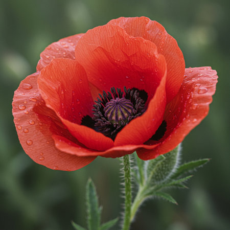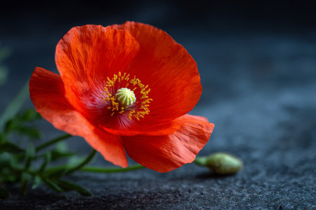 Vivid red poppy displayed on a rich textured backdrop showing natural beauty