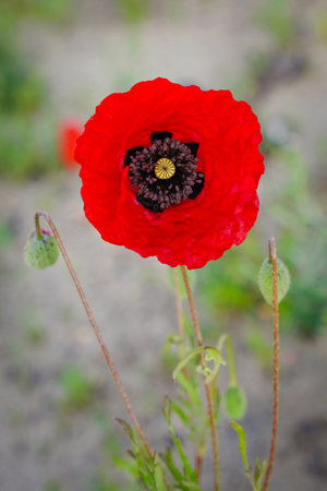 poppy flower in the garden with selective focus and shallow depth of field