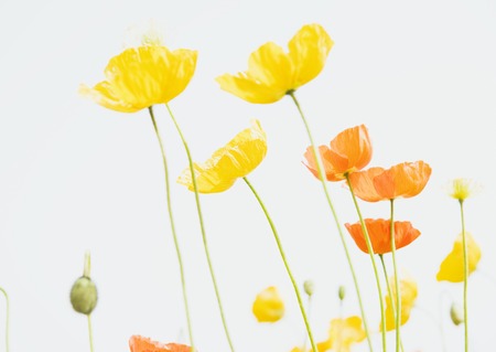 Poppy flowers in the studio. Concept of minimalism and elegance