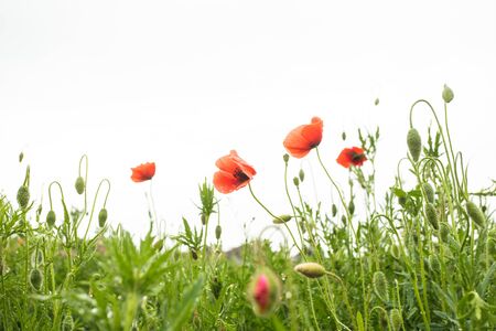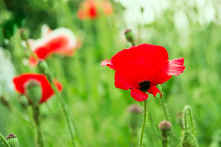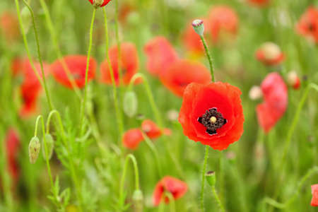 Beautiful poppy flowers in the field