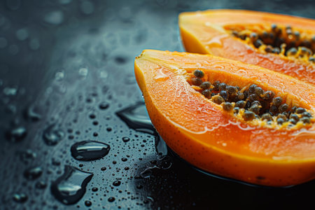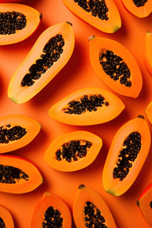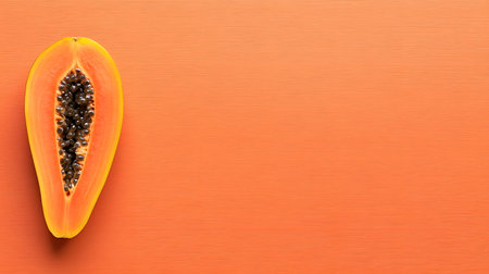 Freshly Sliced Papaya on Vibrant Orange Background AI Generated
