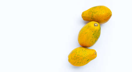 Papaya fruits on white background. Copy space