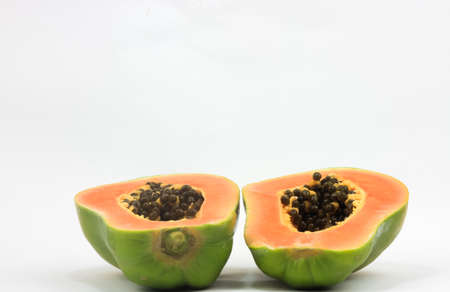 haft of fresh papaya isolated on white background