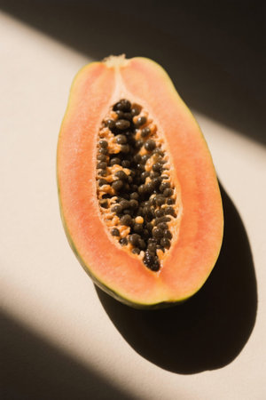 Delicious Papaya Halves Revealing Juicy Seed Caverns and Vibrant Flesh on a Bright Background