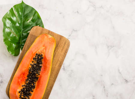 Papaya fruit on the table, top view.