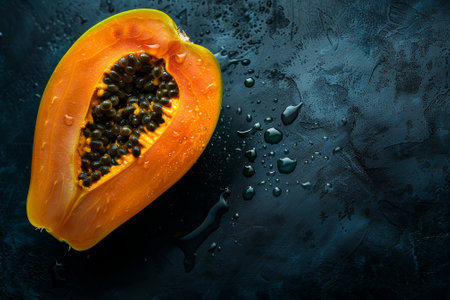 Fresh Papaya with Black Seeds on Vibrant Blue Background for Healthy Tropical Fruit Branding and Summer Lifestyle Concept