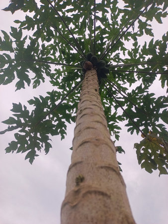 Papaya tree in the garden with cloudy sky, Lautoka, Fiji
