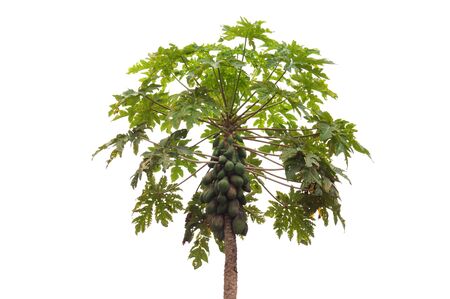Papaya tree isolated on white background with clipping paths for garden design. Tropical economic crops that are easy to grow, yield fast