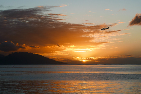 Tahiti sunset airplane silhouette