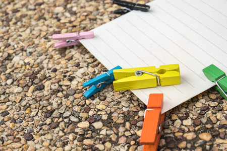 Composition of colorful clips on pin surface. School equipment, tools, education, pattern and creativity concept.