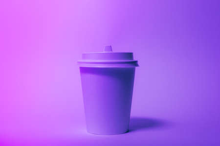 Paper disposable cup in trendy neon light.