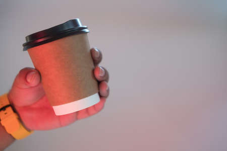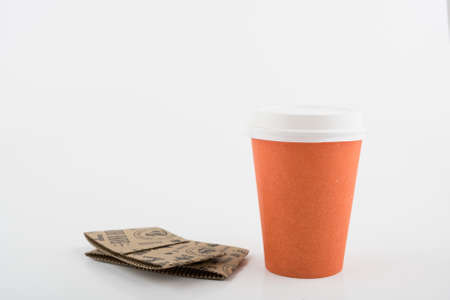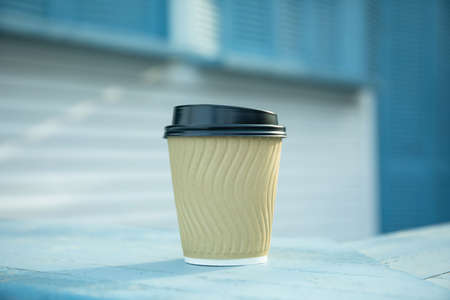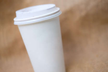 Close up shot of paper coffee take away cup