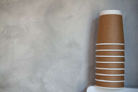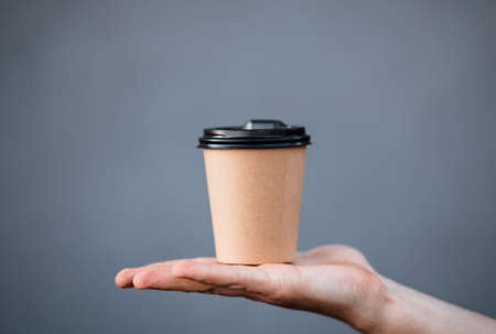 Coffee paper cup on gray blurred background