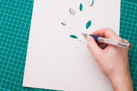 Cutter Knife Cutting white paper on cutting mat