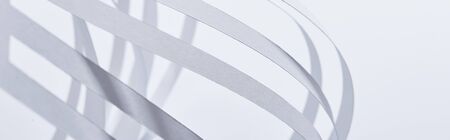 close up view of paper stripes isolated on white, panoramic shot