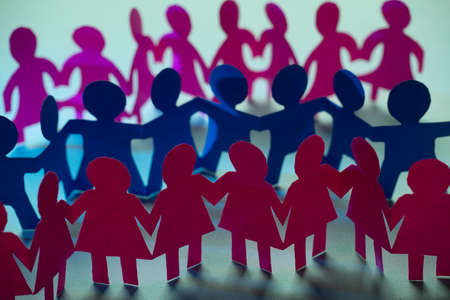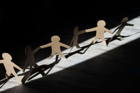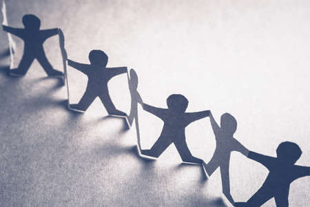 Teamwork, Partnership, Humanity and Unity Concept. Human Sign Shape cut out on Fold Paper, Metaphor Photo. People Holding Hands Together