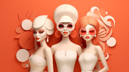 A vibrant silhouette of paper dolls, representing diverse women, stands hand in hand against a stunning gradient background. This image beautifully captures the essence of friendship, unity, and empowerment among women, radiating warmth and connection.