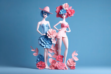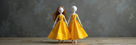 Two dolls in yellow dresses on a gray background. 3d rendering