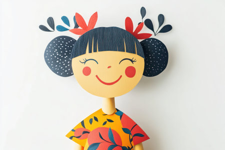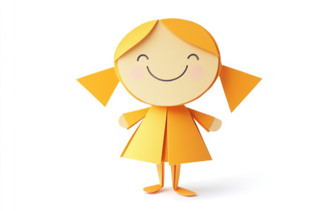 Cute paper-cut style child with a happy smile on white background, perfect for playful, educational, or kid-related concepts.