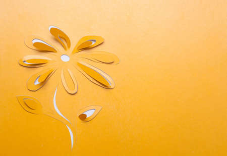 beautiful handmade paper flower on orange background. fresh spring and summer background
