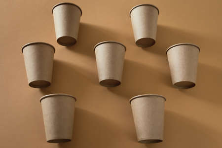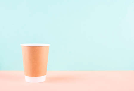 Eco friendly craft paper cups on pastel background. Recycling concept. Zero waste theme