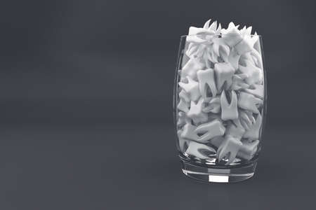 Illustration with many white teeth in glass