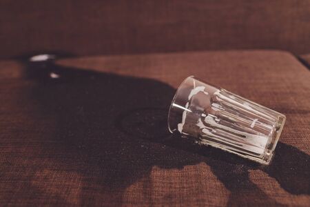 broken glass on the serving table napkin kitchenware