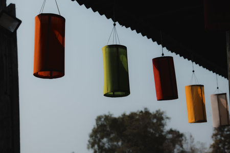 Festive Display: Colorful Lanterns Hanging in a Mesmerizing 3:2 Arrangement