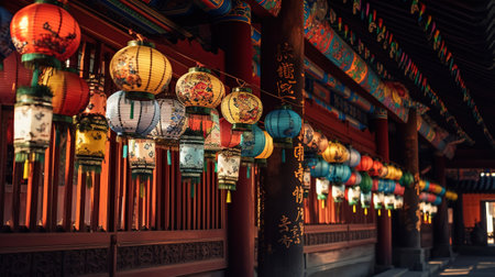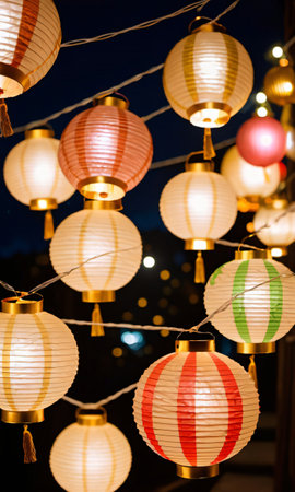 Colorful Paper Lanterns Illuminating Festive Night.