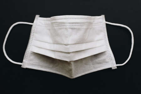 White surgical medical face mask to protect from isolated on dark black background