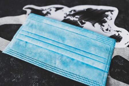 Respiratory mask on Black background, Protective medical mask with 2019-nCoV, Coronavirus protection concept. Space for text.