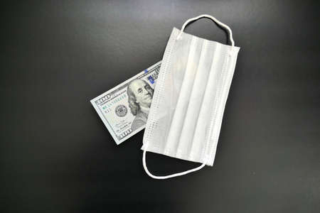 Cost of prevention corona virus - money and preventive facemask stock photo