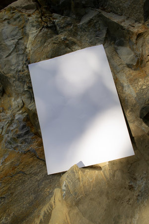 Stylish white blank paper mockup on a colorful background. Document and presentation stationery creator. Selective focus on paper