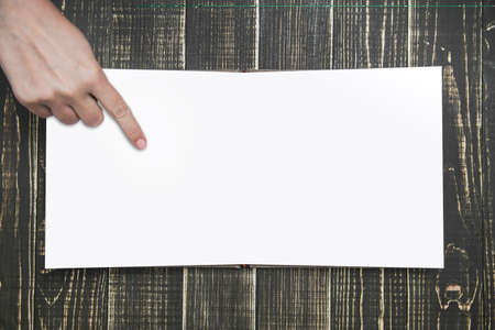 Top view Hand with blank white paper