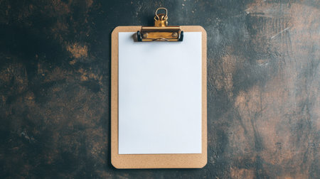 A blank clipboard rests on a dark textured surface, providing a perfect canvas for creativity. Ideal for presentations, notes, and organizational designs.