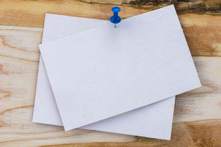 white paper pinned on the wood background