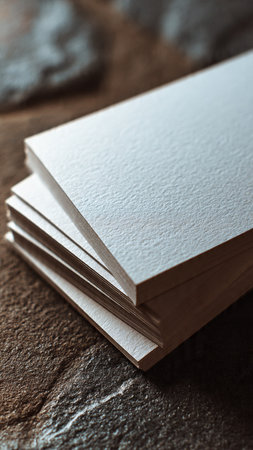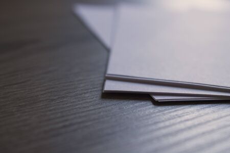 White business card sheet of paper a4 stack on a dark table. Clean portrait A4.