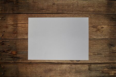 Blank white paper on old wood board