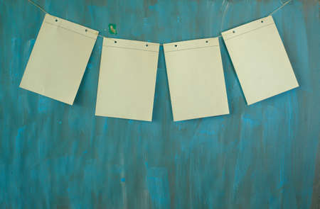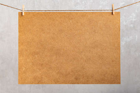 Craft board hang with clothespins on rope. Place for your text. Copy space.