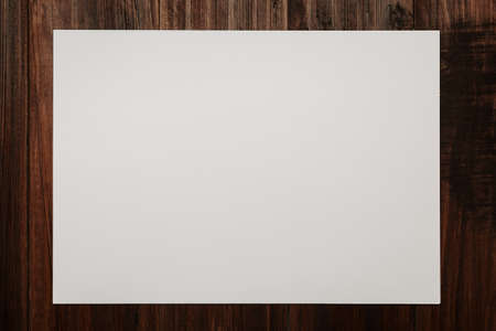 Blank white paper on wooden panel background