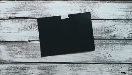 a sheet of black paper pasted on an old wooden wall. Advertisement template