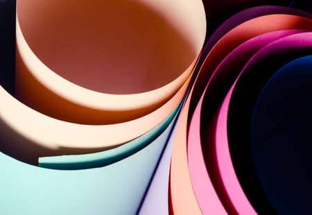Abstract background with layers of colored paper at the top of image. Photo wit hcopy blank space.
