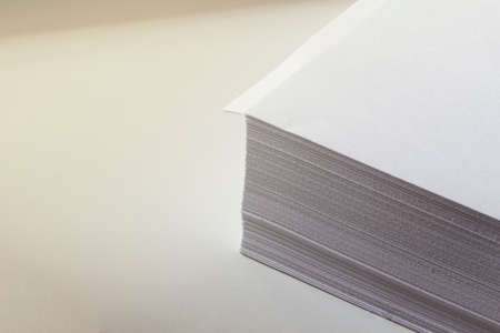 Stack of paper sheet and pencil with empty pages on abstract table background. Creative idea concept