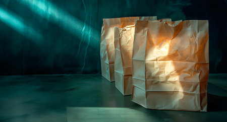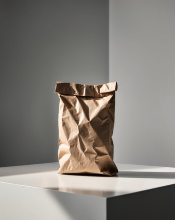 AI Generated. A Simple Brown Paper Bag on a Black Surface