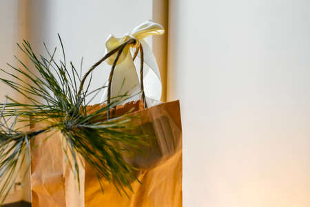 Christmas and New Year's gifts in eco-friendly paper bags.