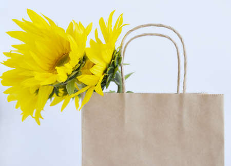 Sunflower with paper bag, paper bag with sunflower, environmental protection